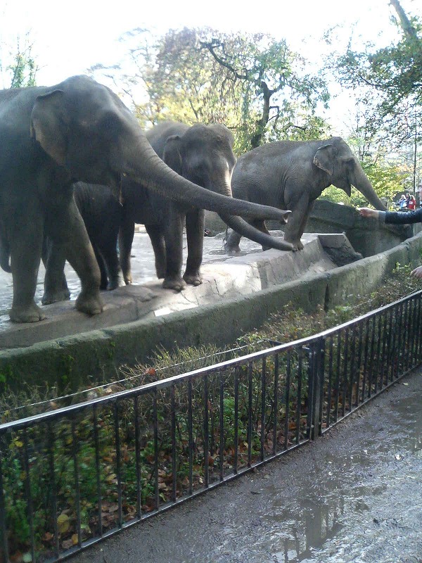 ハンブルクの動物園はとっても大きくて、象にこうやって餌をあげられます。